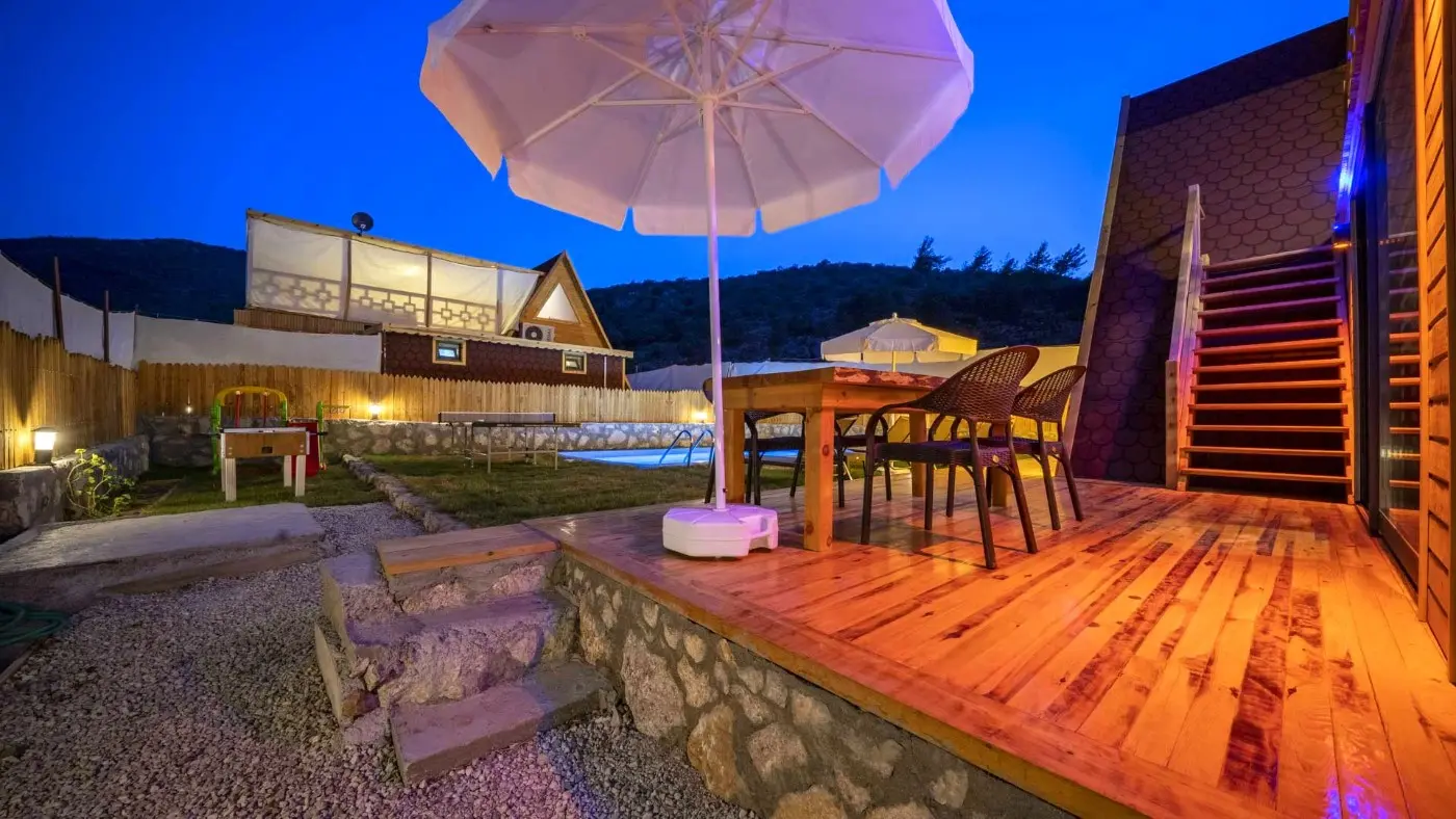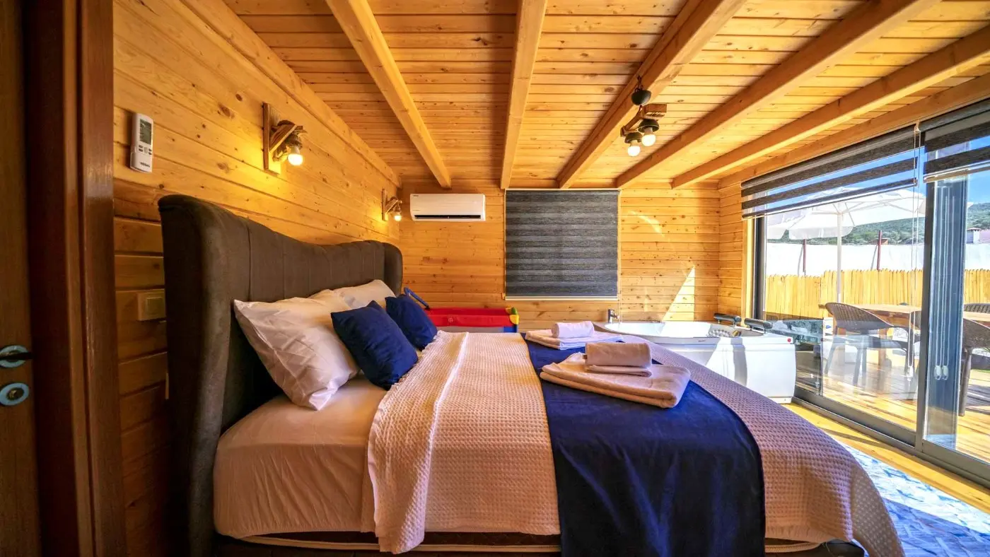 2 yatak odalı olan villamız, toplamda 4 kişiye kadar konaklama kapasitesine sahiptir. Şık tasarımı ve konforlu donanımıyla balayı çiftleri ve çekirdek aileler için ideal bir seçenektir.