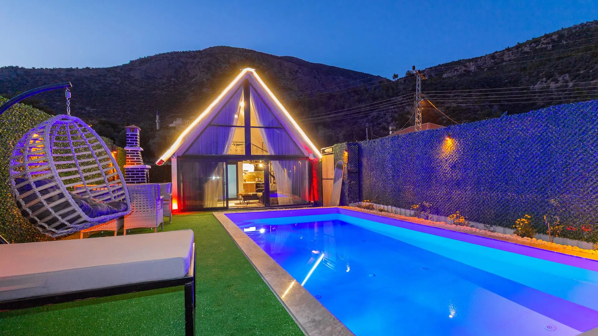 Kaş Çayköy bölgesinde yer alan bu modern tasarımlı, özel havuzlu villamız; balayı çiftleri ve çekirdek aileler için konforlu bir tatil imkânı sunmaktadır.