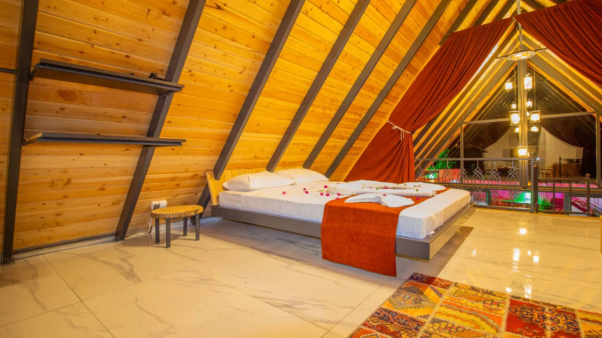 Villamızda 2 yatak odası bulunmakta olup, toplamda 4 kişiye kadar konaklama kapasitesine sahiptir. İç mekân; şık detaylar ve rahat mobilyalarla donatılmıştır, doğa ile iç içe huzurlu bir tatil atmosferi sunar.